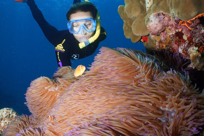 At the first reef location, you’ll gear up and be briefed about the site itself before jumping in to experience the glorious underwater vista that makes this dive area so popular. After getting to know the first location, you’ll cruise to the second and third dive sites – each unique yet as beautiful as the last and all three bursting with colourful sea life, corals and seaweeds. Each exclusive location offers a specific challenge for divers of all skill levels, so whether you are a snorkelling or diving professional or have never donned a mask before, your guides will personalise each location’s activities just for you.