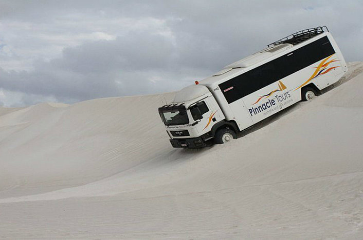 As the desert begins to cool you will travel back towards Perth via Lancelin, a delightful fishing and tourist destination nestled between a large sheltered bay and 2 kilometres of pristine white sand dunes. The towering dunes are where you'll enjoy the thrilling adventure of 4 wheel driving, zooming across the pure white crests, in view of the Indian Ocean. With the opportunity for trying your skill at sandboarding as well. If travelling in Winter, you may be lucky enough to experience the spectacular sunsets that this coastline is famous for as you head back to your original Perth pick-up point at around 7:30pm.