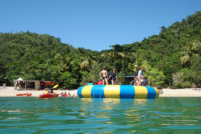 The beach hire hut has a range of snorkeling gear hire, plus they can book you on the glass bottom boat tour. From here you can also hire a paddle ski and explore Welcome Bay, or try the fun of the Ocean Trampoline.