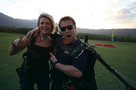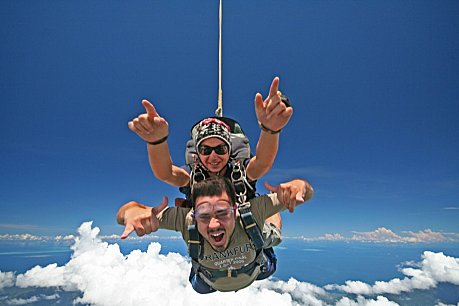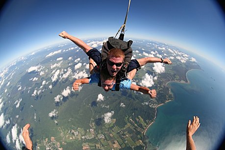 Free airconditioned bus transfers to our 5star skydive training facility, all personalized training and instruction, up to 15,000ft exhilarating tandem skydive (60 seconds free fall), spectacular views of Reef and Rainforests, Option to fly your parachute, Landing as Skydive Cairns exclusive Drop Zone, Utilizing a purpose built skydiving plane with wide doors and spacious interior, Skydive Certificate
