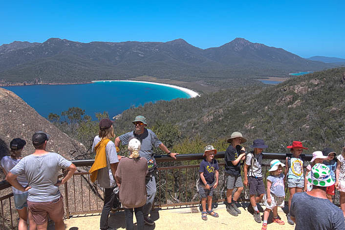 Now it is time to discover the beauty of Wineglass Bay! It involves a 45 minute (1.4km) walk uphill, it is not a race, so you can go at your own pace. The spectacular view is well worth the effort, you will be amazed at just how beautiful it is. And yes, it is just like the photos! It has a backdrop of the The Hazards, made from pink granite giving them a pink tinge. After taking way too many photos you will get to choose whether you take a 1.5 hour return walk down to Wineglass Beach where you have time to relax or go with your guide to explore other parts of Freycinet National Park.