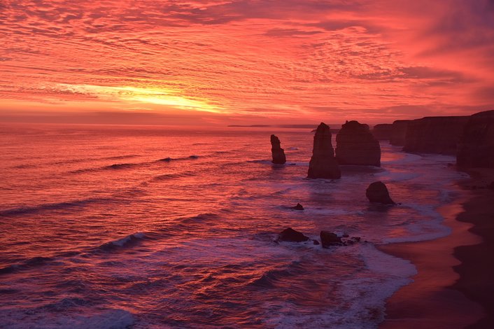 As the sun approaches the horizon we make our way to our final sightseeing destination. You will be awestruck by the majestic monoliths of the Twelve Apostles. Enjoy a genuine spectacle watching the colours of the sky & the land transform in the evening light.