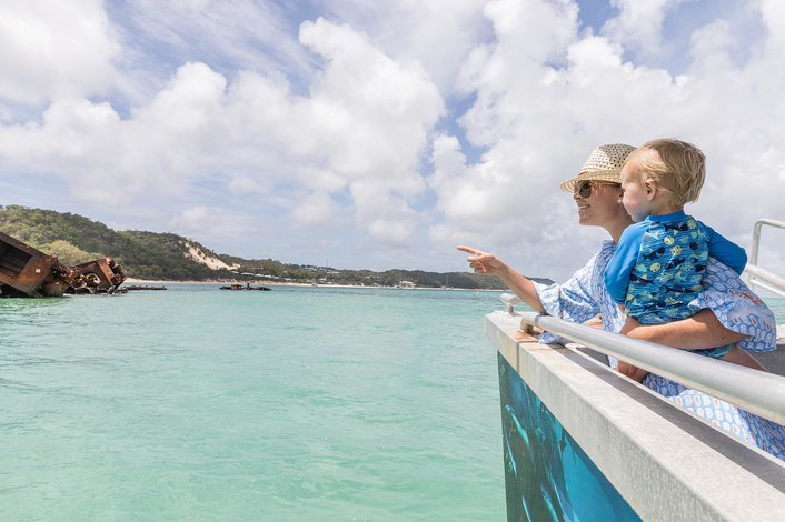 Spend the day exploring Moreton Island, with your choice of land or water based touring activity included on Tangalooma’s Classic Day Cruise. Experience the thrill of sand tobogganing down the dunes, spot local marine life on the Marine Discovery Cruise or snorkel the famous Wrecks.